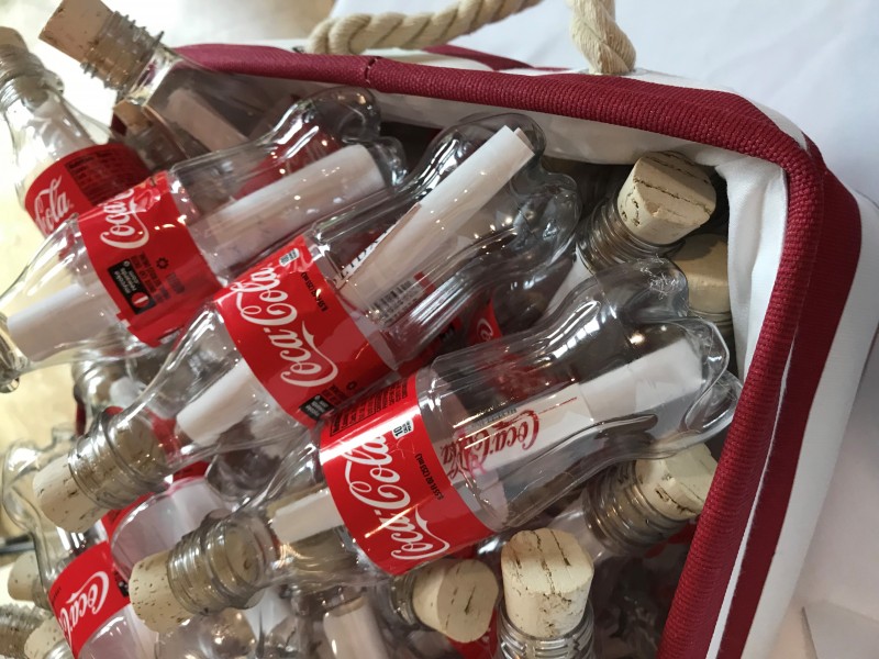 At an event held today at the USO Warrior and Family Center in Bethesda, Md., USO members and their families received a mini bottle with a special note written inside. The messages were written by Coca-Cola Consolidated team members and members of the public expressing their gratitude. So far more than 1,000 bottles have been distributed at events throughout the U.S.